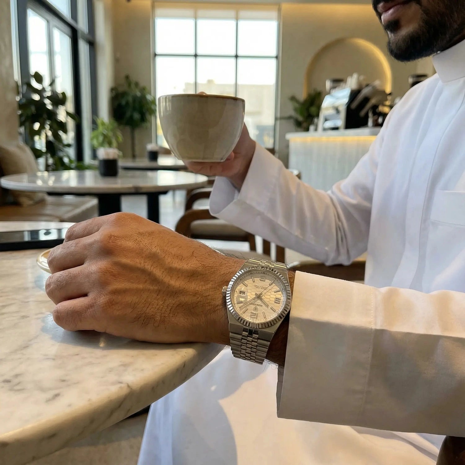 ما توقعت كذا. التفاصيل مرة مرتبة، وعلى اليد شكلها يعطي إحساس ساعة غالية تناسب اللبس الرسمي والكاجوال بدون أي تنازل.